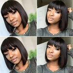 Brazilian Remy Non-toxic Wig, Straight Hair And Short Hair, Black. Human Hair Mechanism, Non-sticky And Non-toxic Wig With Bangs, Suitable For The Whole Scene.