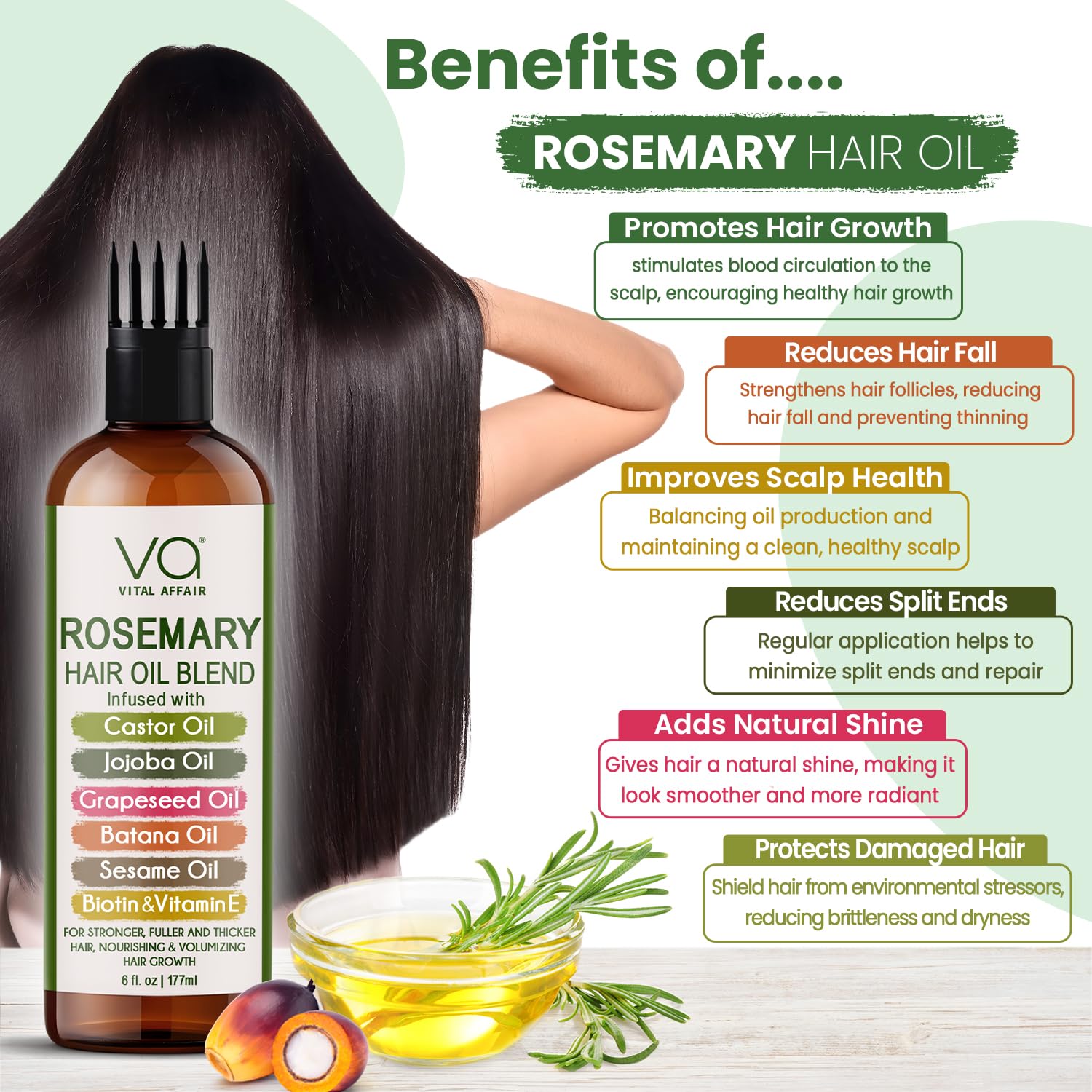 VITAL AFFAIR Rosemary Hair Oil with Castor, Batana, Jojoba & Biotin (6 oz)