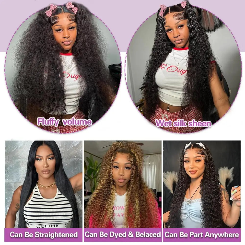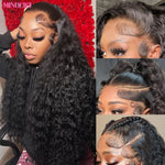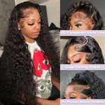 Deep Cury HD Transparent Lace Frontal Wig Natural Black 30Inch 200% Density 13x6 Deep Wave Lace Front Wig Human Hair Pre Plucked