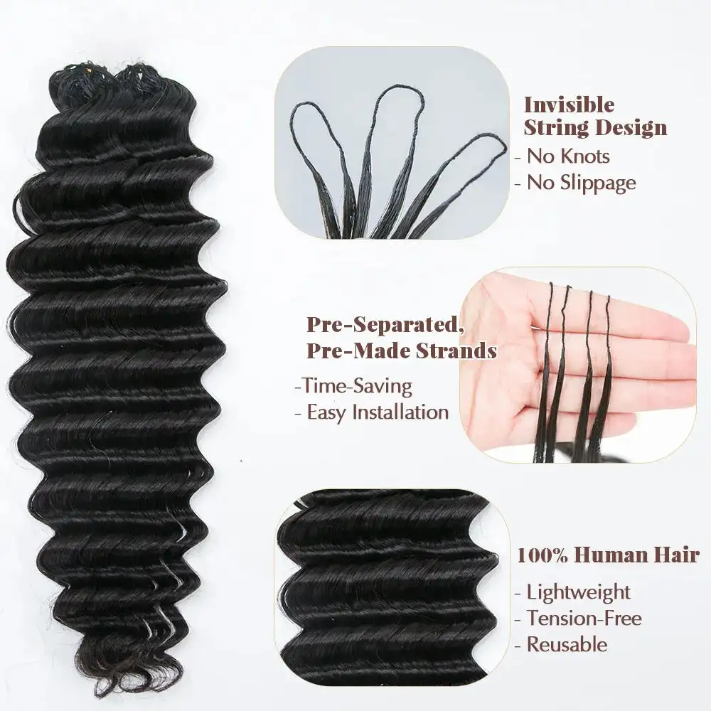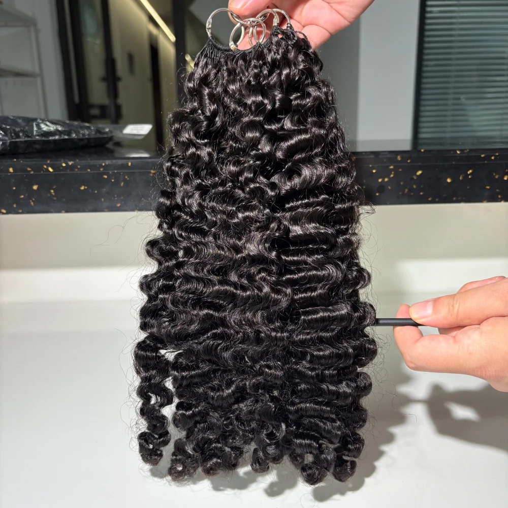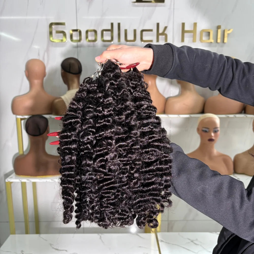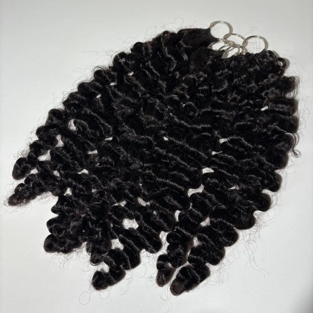 Feather Hair Wefts 15A Burmese Curly Real Remy Human Hair Weave Knotless Crochet Pre-Separated Feather Hair Extensions For Women