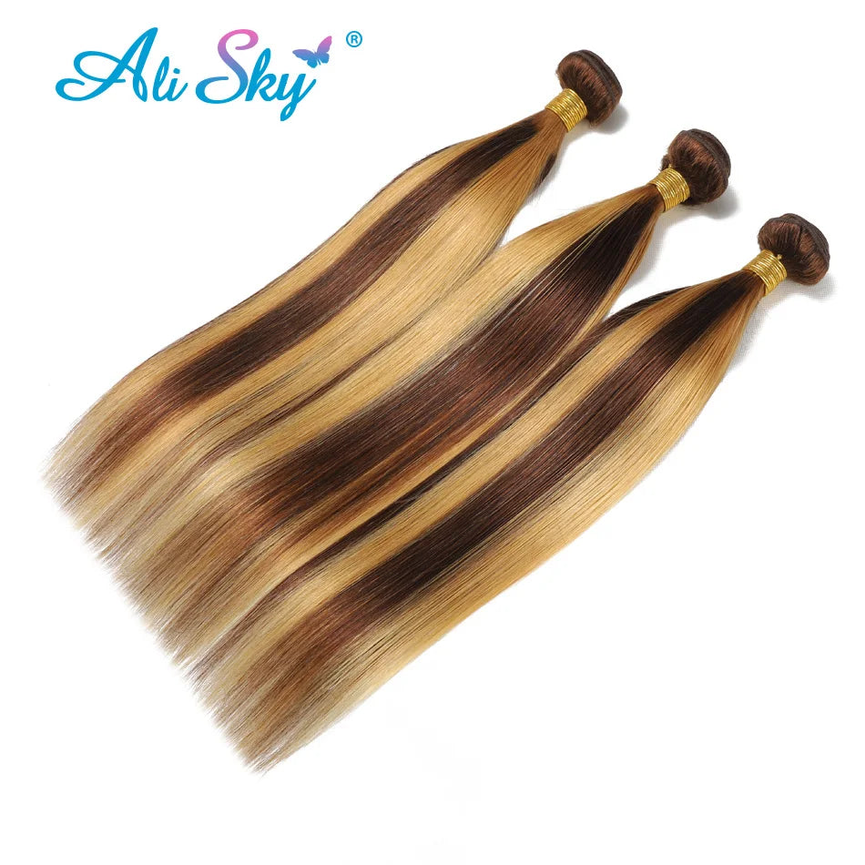 Highlight P4/27 Honey Blonde Bundles Bone Straight Human Hair Brazilian 1/3/4 Bundle Hair Weave Extensions New In Clearence Sale