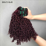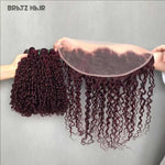 14A Super Double Drawn #99j Pixie Curly Human Hair Bundles Dark Bungundy Curly Bundles for Wig Making 13x4 Frontal 4x4 Closure