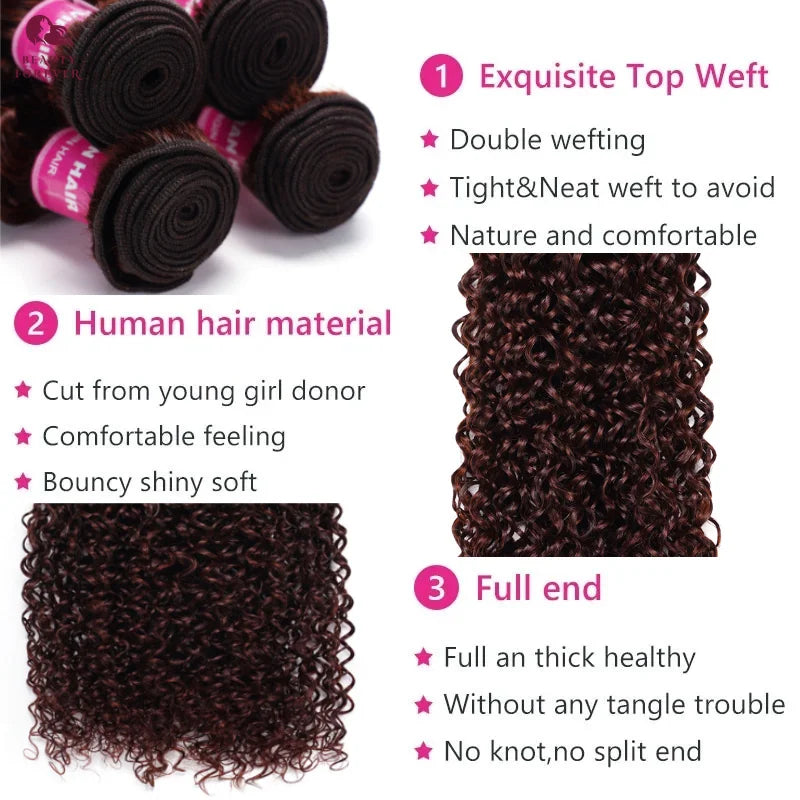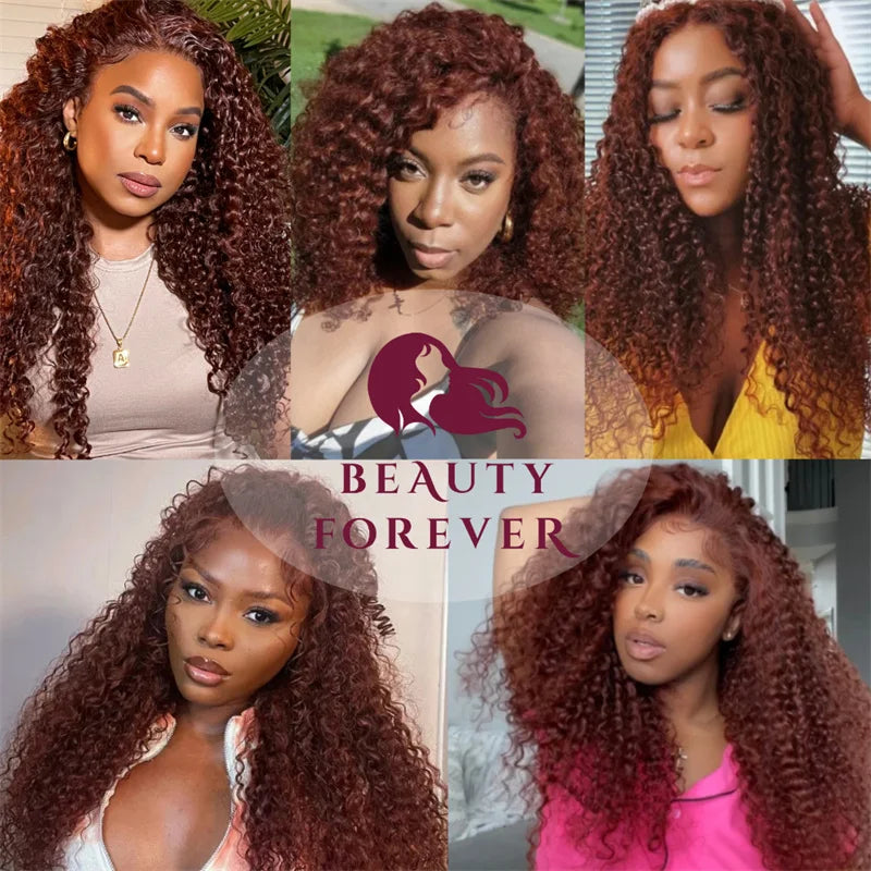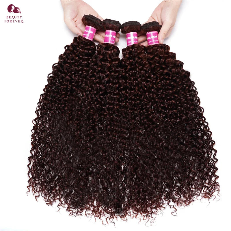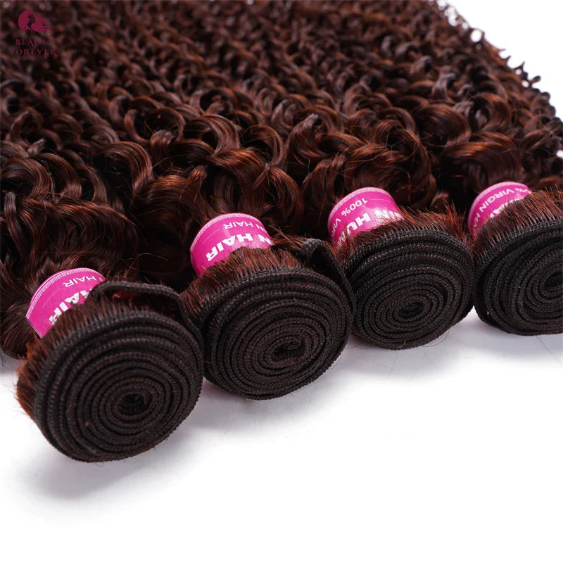 Beauty Forever Grade 12A Curly Human Hair Bundles #33B Reddish Brown Color Brazilian Remy Hair Weave Bundles 1 / 3 Pcs/Lot