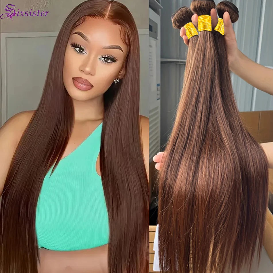 Dark Brown Bundle Human Hair Color 4 Straight Bundles Virgin Remy Hair 3 Bundles Double Weft Chocolate Brown Straight Bundles