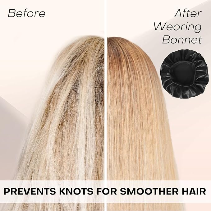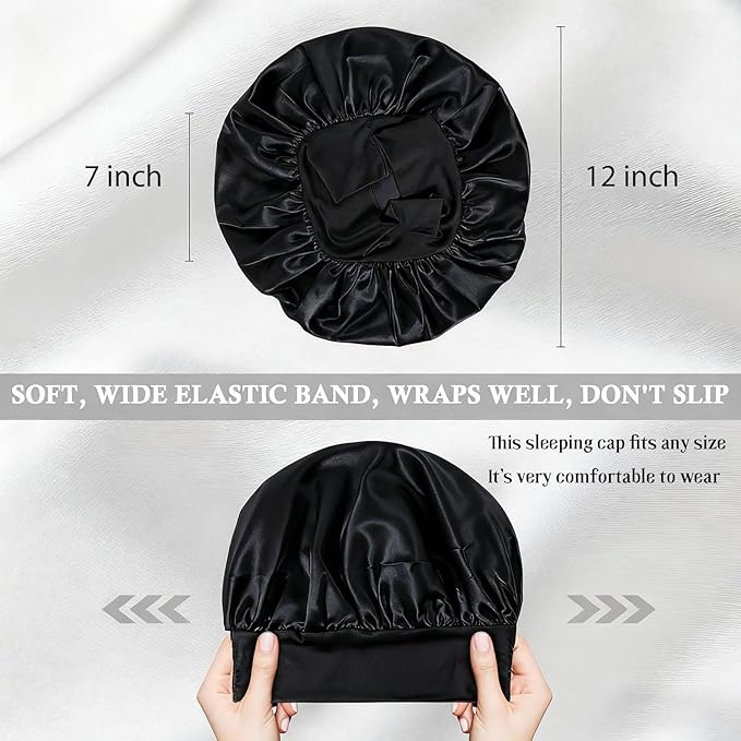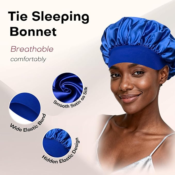 Silk Satin Hair Bonnet for Sleeping Women Curly and Natural Hair 5 Pack