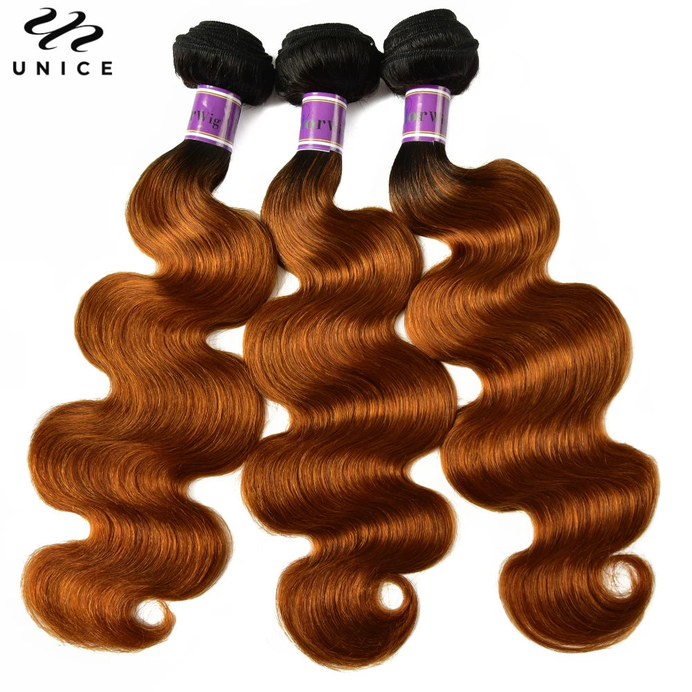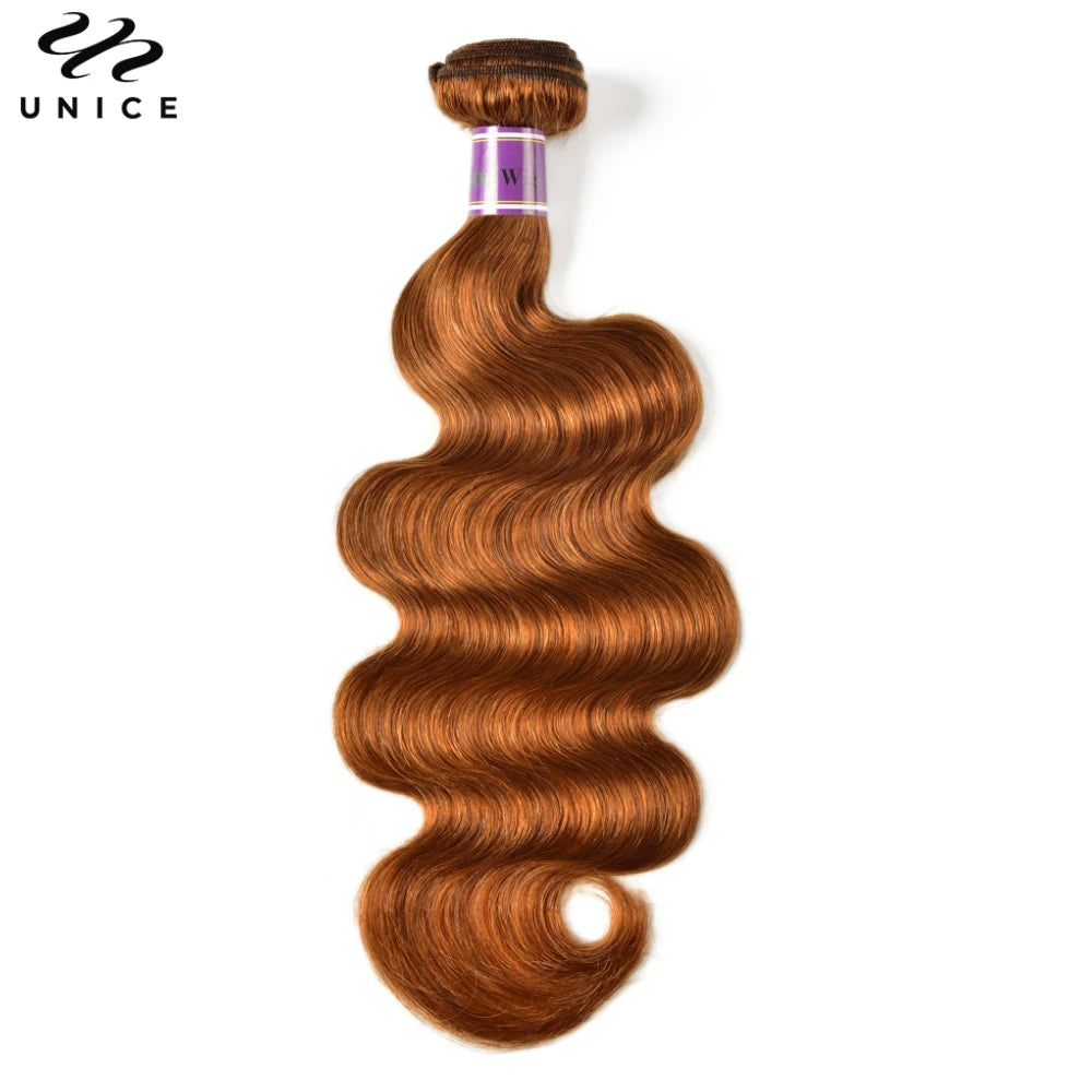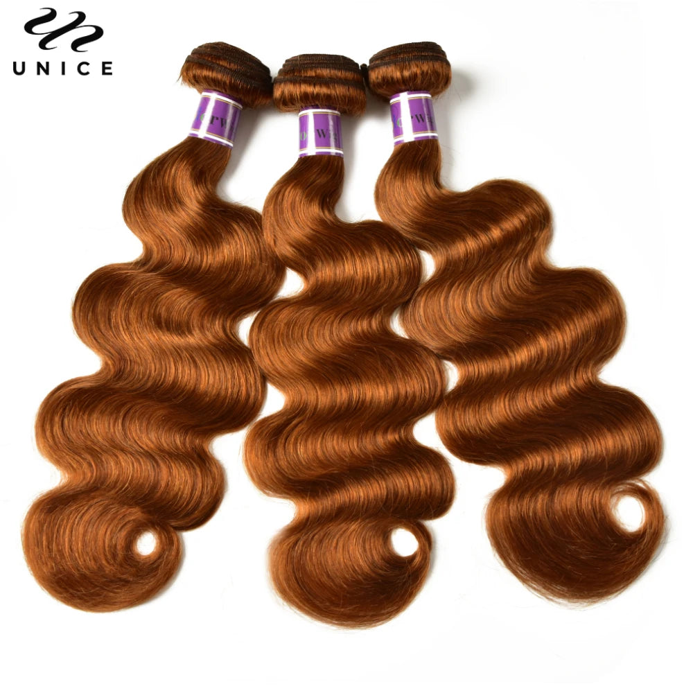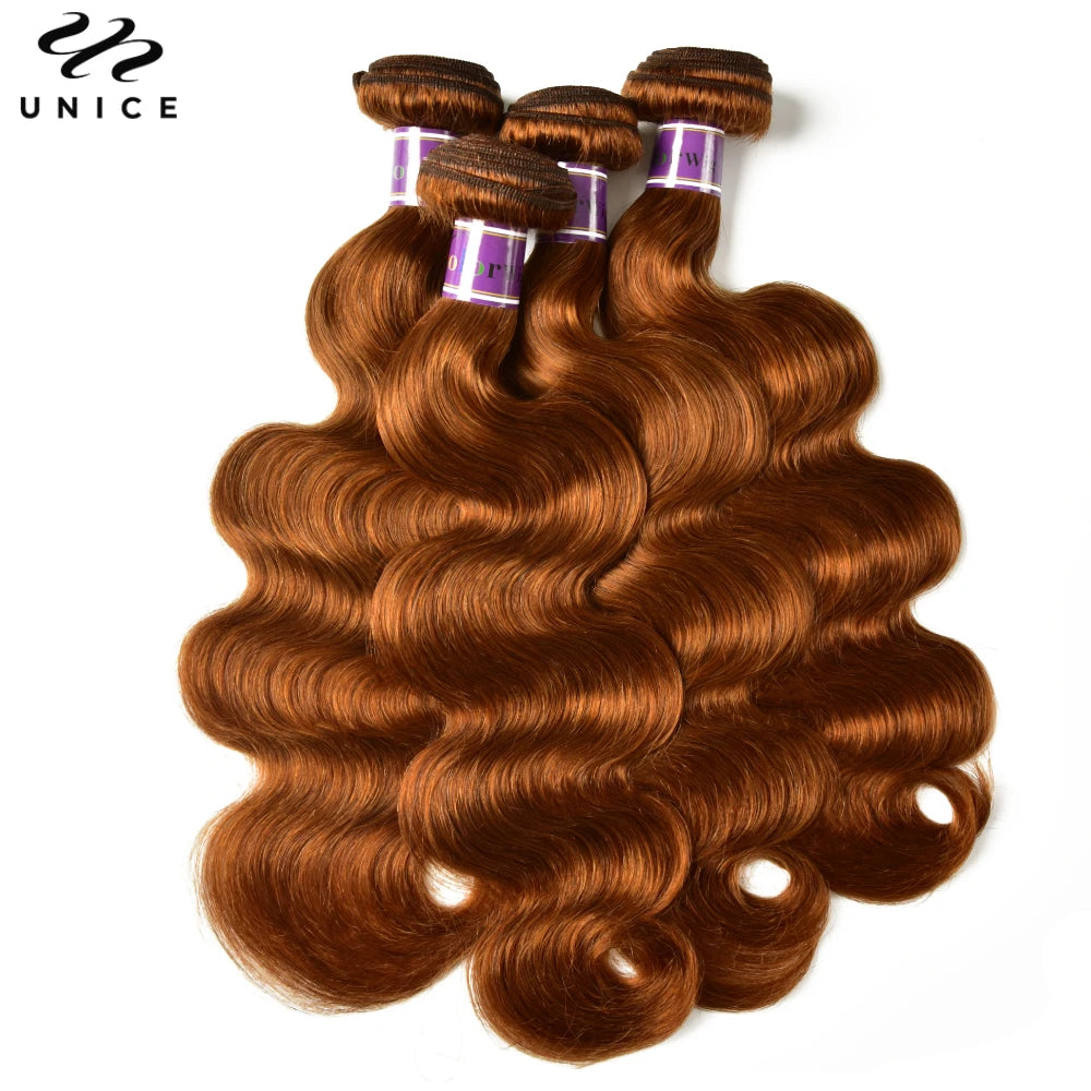 UNice Hair #30 Brown Colored Body Wave Human Hair Bundles 1/3/4 PCS Deal 100Grams Per Bundle Sew In Bundles Quick Weaves