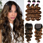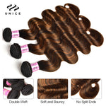 UNICE Hair Balayage Body Wave Human Hair Bundles 3PCS With 4x4 Lace Closure Highlight Bundles With Closure Make 250% Density Wig